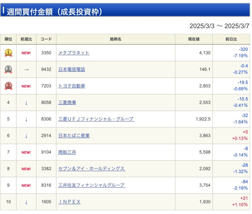 メタプラネットが、新NISA成長投資枠の週間買付ランキング1位やったんや。