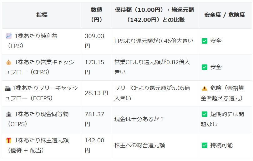 ✅ 結論:配当と財務は安心、でもキャッシュフローが気になるなら今後の成長戦略に注目やで!⚙️📦💹